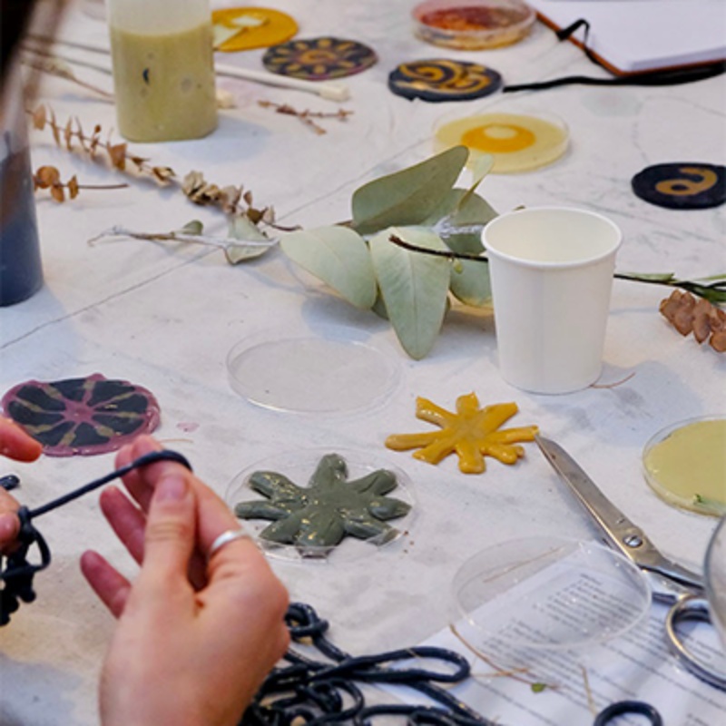 This workshop offers a playful and tactile introduction to conscious design practices. Participants will take home their own bio-yarn and bio-plastic, along with a recipe card and plenty of information on how to continue their biomaterial journey.