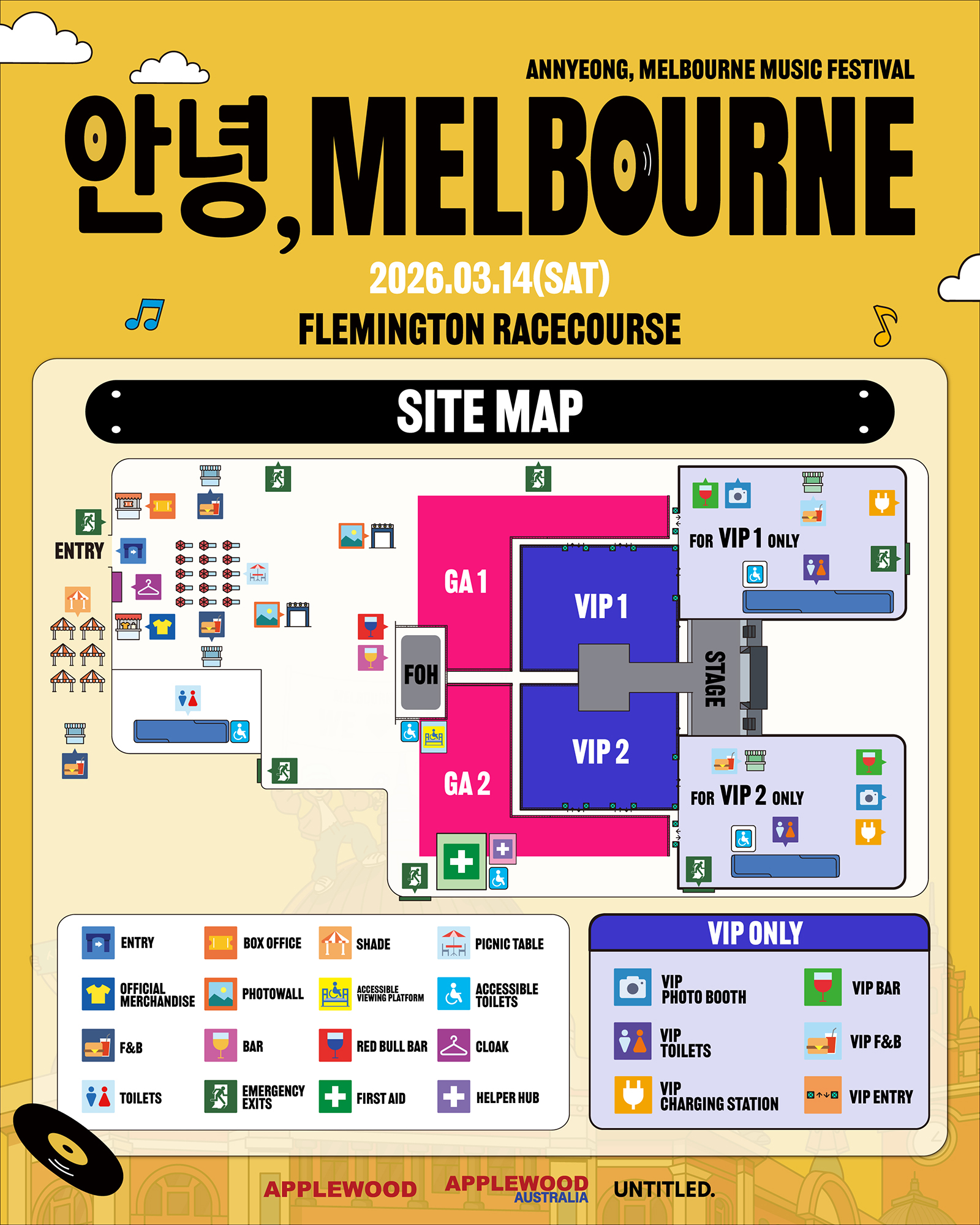 APPLEWOOD — who have worked with global superstars including BLACKPINK, SEVENTEEN, ENHYPEN, BAEKHYUN, LE SSERAFIM, GFRIEND and G-DRAGON — will partner with Australia’s leading festival promoter, Untitled Group, to bring this landmark event to life.