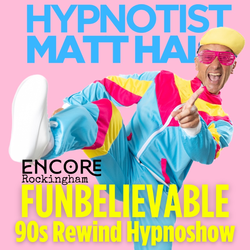Hyp Me Baby One More Time! The unmissable smash-hit comedy hypnotist of Edinburgh Fringe brings his brand new 90s party hypnoshow to ENCORE Rockingham! As seen on BBC, 200million+ views online, multiple sell-out Fringe runs. Enjoy from stage or audience –you choose! All-ages friendly.