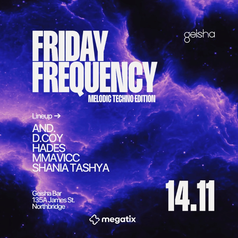 At Friday Frequency, Geisha Bar tunes into the pulse of the underground — showcasing local legends and special guests who know how to work the room from warm-up grooves to peak-time euphoria. Expect nothing but quality cuts, seamless mixing, and that intimate, late-night atmosphere only Geisha can deliver.